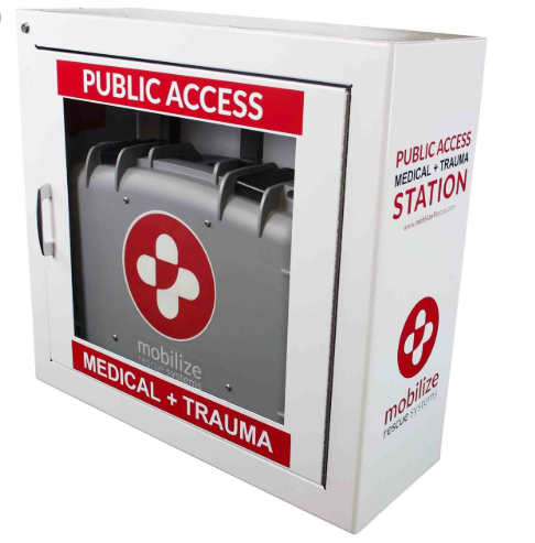 This wall cabinet provides easy access to Mobilize Rescue System and clear visibility.